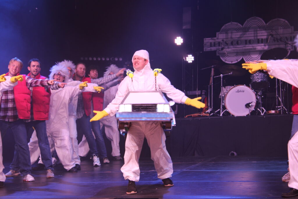 The men of Alpha Gamma Omega as Back to the Future.