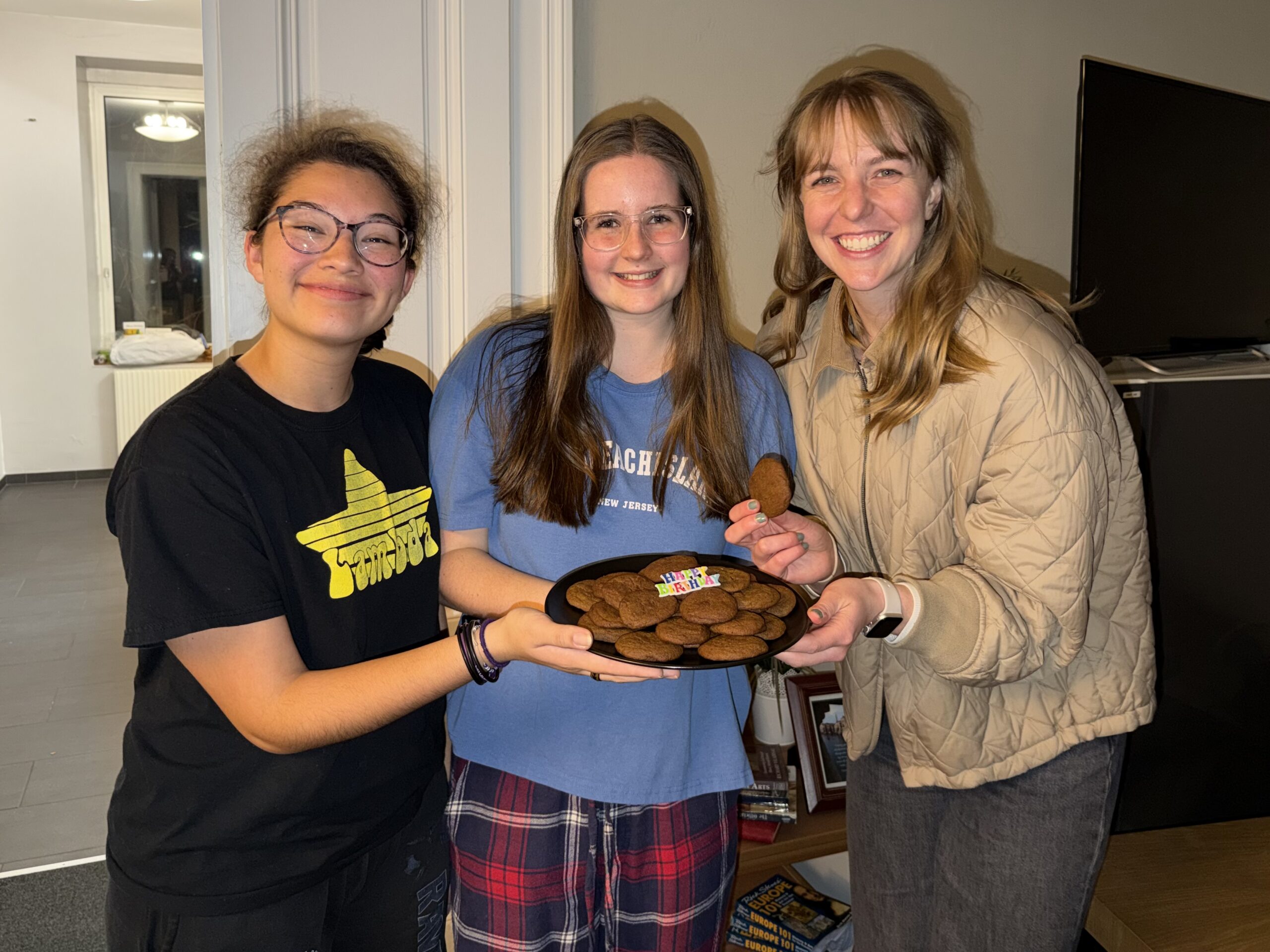 Since students began classes in Vienna during the first week of February, program leaders have hosted weekly social events for all students staying at Das Millicanhaus (Das Mil) to come together in community. These events are planned by a student committee which oversees social events for the students in the Vienna study abroad program. This past week, Das Mil had a birthday celebration for three residents, and a “Mamma Mia” movie night in, with homemade molasses cookies made by Megan Huber.